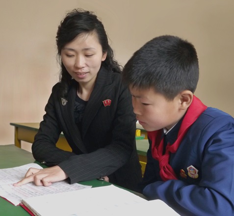 ピョンヤン市*1テソン区域*2のコサン初級中学校に生徒と父兄に親しまれる乙女の教師がいます。名前はチ・リョンヒさん、25歳、チさんは、ここ数年間、片方の足のない生徒のキム・ジョンホさんを姉のように顧みています。