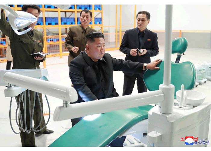 工場でつくった医療機器の試作品を詳しく見ていた金正恩委員長は、直々、診察用のベッドとチェアユニットに腰をかけました。そして、スポンジがやや固い感じがする、歯の治療を受ける時は、長時間、首を後ろにのけぞって座っているだけにヘッドパネルを柔らかくしなければならないと細心なことにまで気を遣いました。