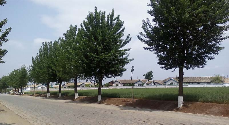 「ここリョクポのいずこにも金日成主席の足跡が印されています。ソサムジョン野菜専門協同農場*3から始まり、遠く離れたリョンサン里*4に至るまで主席の指導が及んでいます。ここは昔からのやせ地で、また水も足りなく、農業が振るわないところとして知られていました。裕福な農場は暮らしがますます豊かになるのが見たくて訪れ、そうでない農場はいつも気になって訪れてはまた訪れ、心を砕いた主席のその恩は永遠に忘れられません」