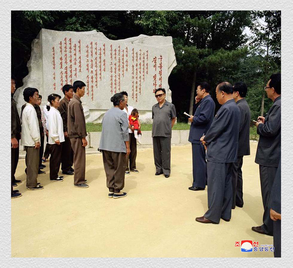「金正日総書記は私の家に入って、用意してきた贈り物も手渡し、一緒に記念写真を撮ろうと言いました。そのとき、私の母の顔が少々やせていました。年若くして夫に先立たれた母は、3人の子を育てて大変苦労し、私も父の愛情というのを知らずに育ちました。総書記は苦労が多かっただろうと言って、母を慰めました。人民のことなら隅々まで推し量るその細やかな心づかいに、私は内心驚きました。母の苦労を私も知らないわけではありませんが、他人は見ただけで苦労したかどうか知るわけないでしょう。総書記にまみえて感じた温かみ、正にこれが父の愛情だと思いました。それで、心の中でお父さんと何度も呼び、総書記が父のように思われて、父と一緒に新居入りした思いで胸中のことを打ち明けました」