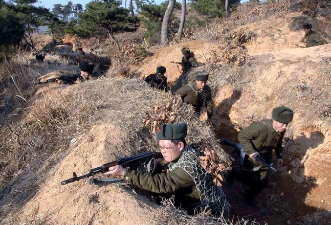 朝鮮の大地がなぜ戦場になって行くのでしょうか。それは、共和国を押しつぶす不法な「制裁決議」を連発しても気が澄まず、夥しい侵略武力を動員して合同演習「キー・リゾルブ」、「フォール・イーグル」を強行しているアメリカと追従勢力の核戦争策動のためです。自主権を生命としている人民なので、平和をこの上なく大事にする人民なので、皆が銃を手にしました。