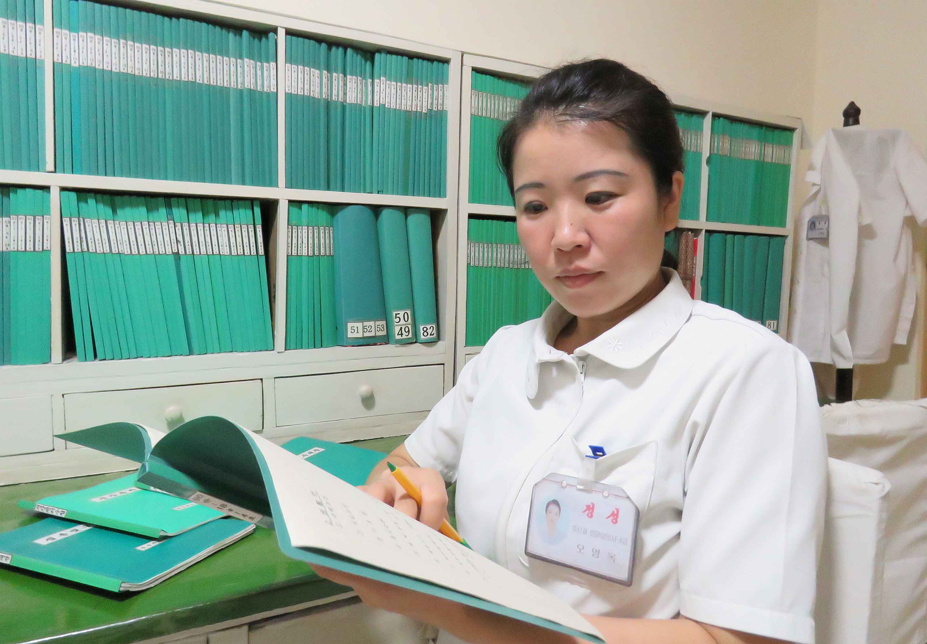 「私たち担当医はまだ1歳前の赤ちゃんは毎月ごとに、4歳までは4半期ごとに、その後からは年に2回ずつ健康検診を行い、治療も行います。時には症状によって区域の病院から専門病院であるオクリュ小児病院に至るまで送って、適時に病気の診断と治療ができるようにし、その状況は健康管理簿に記録されるわけです。また、出生後、子供に季節ごと、また年齢別に予防接種を行い、健康管理簿に記録します。この予防接種は朝鮮で義務付けられています。子供たちが予防接種に適時に応じない場合、医師と子供の母親の間に『いざこざ』がある時もあります。まさに、この健康管理簿に朝鮮の社会主義保健医療制度のありがたさが含蓄されているといえます。日増しに深まる社会主義保健医療制度の恩恵と共に、この健康管理簿も厚くなります」