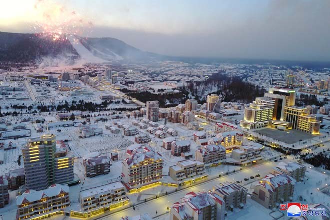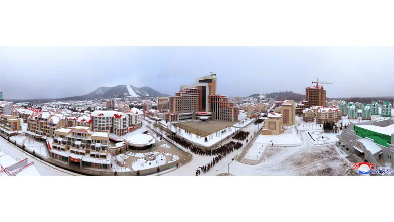 敬愛する最高指導者金正恩委員長は、朝鮮革命の始原が開かれたペクトゥ山*3があるサムジヨン市を世界にまたとない山間の都市につくる構想を練りました。共和国の勝利を続ける前進を好ましく思わない敵対勢力の策動が極みに達した時、金正恩委員長が膨大な山間の都市の建設を構想したのは人民の尽きない力を信じたからです。