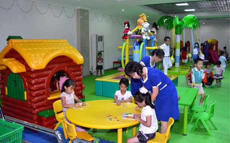 正に、子供たちを一番可愛がる金正恩委員長の思いやりの中、ピョンヤン児童百貨店の室内遊技場からは子供たちの幸せの笑い声が絶えていません。