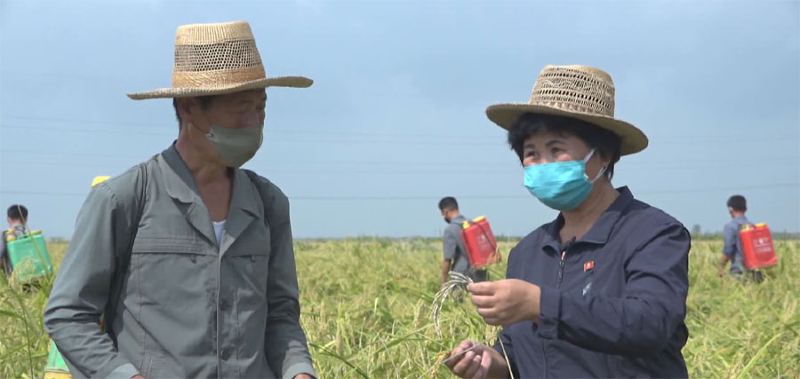 共和国全域で発生した暴風雨によってひどい被害を受けたファンヘ北道*1の各農場で、農作物の生育状態を改善するための農業技術上の対策が取られています。関係者たちが田畑に出向いて、被害状況をつぶさに把握し、適切な対策を立てています。