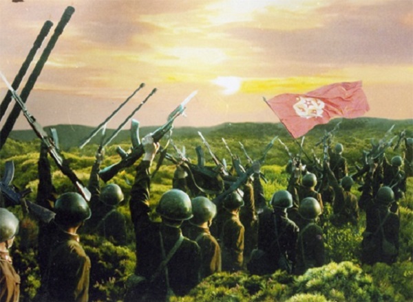 天が授けた先軍の総帥金正恩元帥の導きの下、チュチェの革命偉業の勝利のために進む朝鮮の軍隊と人民を阻む力はこの世にありません。金正恩元帥を首班とする党中央委員会の周りに固く結集して、先軍の旗の下、社会主義強国建設に励んでいる朝鮮人民にはいつも勝利と栄光だけがあるでしょう。