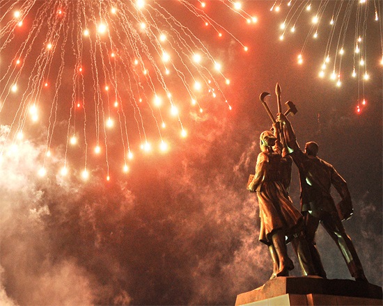 共和国の繁栄と朝鮮労働党の発展には、金正日総書記の不滅の業績が秘められています。総書記は、半世紀以上の長い間、朝鮮労働党を導いて、革命的な党に、人民大衆と渾然一体を成し、人民大衆のために奉仕する母なる党に、鋼鉄のような規律と戦闘力を持つ不抜の党に発展させ、金日成朝鮮の尊厳と威容を世界に轟かせました。
