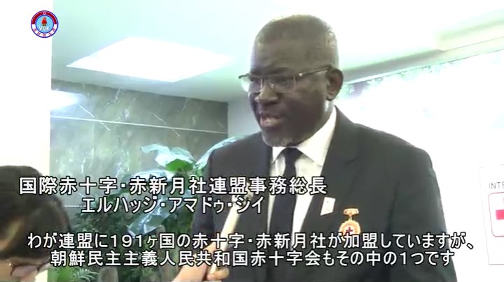 「わが連盟に191ヶ国の赤十字・赤新月社が加盟していますが、朝鮮民主主義人民共和国赤十字社もその中の1つです。私たちは古くから信頼と尊重に基づいた協力関係を結んでいます。連盟の正式メンバーを持っている共和国に来て、共に国際赤十字・赤新月社連盟創立100周年を記念し、これまでの活動から教訓を得て、また最も肝心なのはこれから人民の要求にもっと多く、もっとよく反応するためパートナーシップを強めるのは絶好のチャンスとなります。私たちは朝鮮民主主義人民共和国赤十字会との協力プロジェクトが進められている地域を訪ねてみました。そこで責任感の強い人たちを目の当たりにしました。みなが国際赤十字・赤新月社連盟の協力を待っているのでなく、自力でやっていました。これが真の意味での自力更生です。本当に驚きです。生産品の結果も感嘆すべきものでした。一方、滞在期間、朝鮮式の歓待と朝鮮の文化を肌で感じました。夕べは大マスゲーム・芸術公演を見ましたが、深い感動を覚えました。一連の問題を取り扱っているだけでなく、共和国人民の実生活を表していました。希望と尊厳、これからのよりよい生活のための奮闘振りを示しました。これらすべてはとても立派な経験でした。また朝鮮民主主義人民共和国赤十字会の雅量と歓待、偉大な協力精神の表れだと思います。先にも触れましたが、仕事をするのは共和国人民であり、私たちの寄与はその人たちへの素朴な支援となります。このたび、私にメダルを授けてくれたことに感謝し、人民の要求を実現するためより多くのこと、より良いことをしなければ、と言う義務感を新たにするものです」