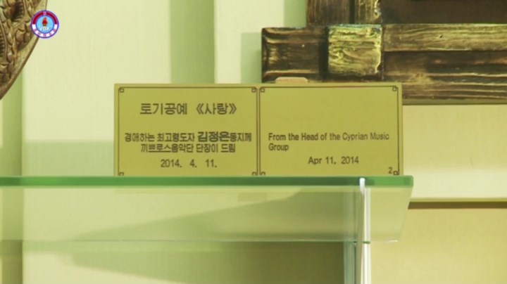 贈り物は団長が自分でデザインしキプロスの土器工芸の専門家に依頼して作った物です。贈り物には朝鮮とキプロス両国の国旗を巻いた2つの腕が描かれています。この2つの腕は楽譜を刻んだ心臓と向かい合っています。これは両国人民の間の深い愛情の感情を表しているといいます。
