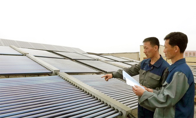 朝鮮で不足する電力の問題を解決するためにいろいろなエネルギー資源を積極的に開発し利用しています。ピョンヤンのリュウォン・シューズ工場では太陽の光エネルギーを効率的に利用しています。