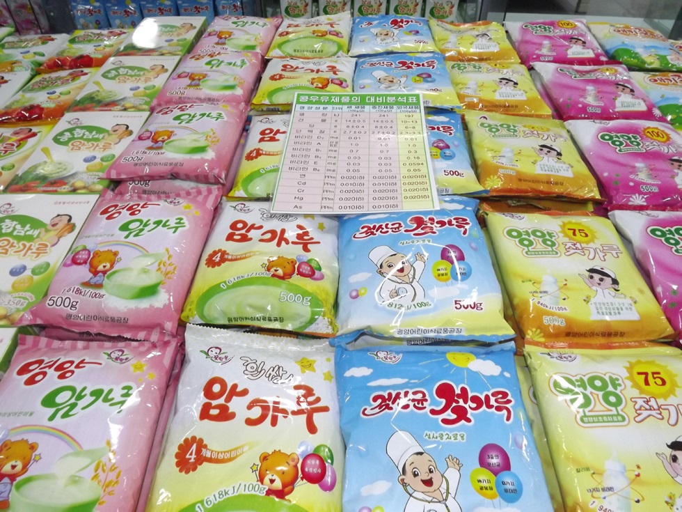 ピョンヤン子供食品工場ではドライミルク、栄養はったいをはじめ色々な美味しい食品を生産して託児所と幼稚園の子供たちに供給しています。