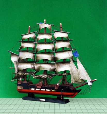 贈り物は、灰色の皮製の帆と船体、帆柱は木製の帆船のミニチュアです。荒波を掻き分けて進む帆船を表した工芸品の高さは53センチ、長さは69センチです。昔から日本の人たちは帆船の工芸品を作って貴賓に贈ったといいます。