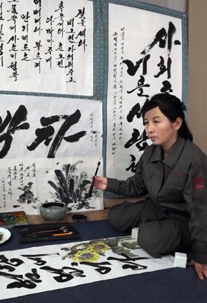 イルシンさんの即興詩を聞いた主席はウンビョルさんとソンイルさんの絵描きを見た後、私のところへ来ました。私は国中の子供みなの思いを込めて、「万年長寿」と言う筆字を書いて主席に差し上げました。私の筆使いを見た主席は本当に上手だ、といって、両頬に口づけしました。そのときの私はこの世の幸せを独り占めしているようでした。