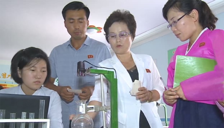 リ先生は学校の教員たちと共に教育で模範を示している学校への見学をたびたび行い、みなが自信を持って革新的な授業の方法を取り入れるようにしました。そして校長の仕事でいつも忙しい中にも必要な教育設備と機材を自力で作ることに深い関心を持ちました。能力のある教員を選んで開発チームを組み、自分もその一員となって懸案を解決していきました。その日々に折り畳み式電子黒板と所定のものを電子黒板で3次元的に示すバーチャル機器などが数十日めに立派に製作されました。