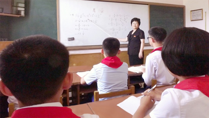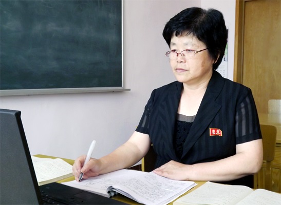 国の将来を支える柱を育てる根となって一生涯、教壇に立っている教育者の中には、ピョンヤン市*1ソソン区域*2キンジェ初級中学校のキム・ムンスクさんもいます。キムさんが教壇に立ったのは38年前のチュチェ70(1981)年でした。