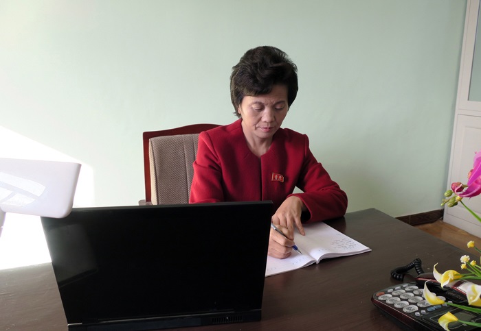 「子供たちの清い瞳と向き合って、初めて教壇に立ったのは30数年前のことですが、そのときは教員になることの意味について知りきってはいませんでした。人みなが無料で学ぶ権利を持っている共和国で、誰よりも真面目で直向きになるべき人は他ならぬ教員だと思います。子供たちを国の立派な人材に育てるためには、教員から範を垂れなければならないからです。それで自分はもちろん、学校の教員みなにももっと頑張るよう求めています」