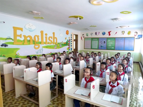 「学校教育の第一歩となる小学校の教育は教育全般でとても重要な位置を占めています。とりわけ、日進月歩の教育の現状は小学校時代の生徒たちが幅広く、深みのある基礎知識をより多く身に付けることを求めています。そのため学校では生徒たちの年齢と心理にあわせて教育条件と環境を一新しました。自然学習室と図画工作室など科目別の実験実習室を童心に合うようにつくったので、それだけ教育の質も上がっています。また、すべての教室が多機能化され、教員たちは教育にコンテンツを積極的に活用しています」
