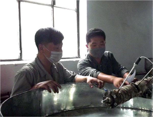 ピョンヤン・ゴム工場でも青年たちが先頭に立って奮闘しています。工場の青年は原料、資材のリサイクル化をイノベーションの重要な目標に掲げ、その達成に拍車をかけています。そして色々な遊休資材を残らず回収して利用することで、生産正常化に役立てています。