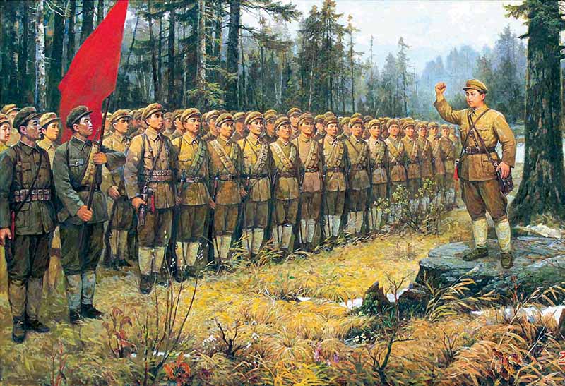 金日成主席は革命的軍隊を創建するため国を愛する労働者、農民、青年学生など広範な愛国青年を武装隊列に結集させました。また、敵軍の武器を奪って武装する一方、自力で武器を製作するようにしました。