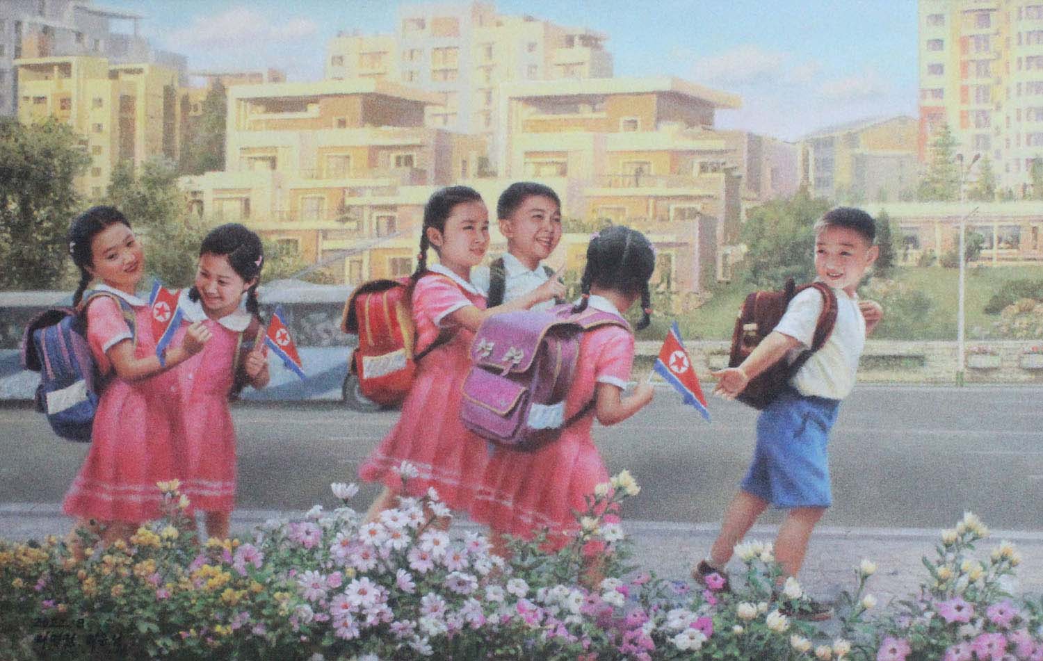 次の世代、未来を大事にする父なる金正恩総書記の許で幸せに育っている朝鮮の子供たちの明るく、元気な姿を描いている。温情こもる新調の制服を着て登校する児童の朗らかな笑い声、歌声が今にも聞こえるようだ。