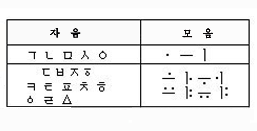 発音器官の形をまねるという独特な原理に基づいて創られました。発音器官の形に合わせてベースとなる文字を創り、それを基本にして音の特性に合わせて画を増したり、二つや三つの文字を合成したりして、一連の法則に準じた他の文字を創りました。