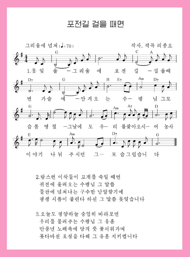 一生涯、人民の食の問題解決のために農村のあぜ道も歩いた偉大な金日成主席を偲ぶ人民の思いを、ポピュラーな詩語と切々たるメロディーに込めて歌っています。そして主席の優しい姿を描き出し、その遺訓を実行して豊作をもたらそうとの人民の意志を表しています。
