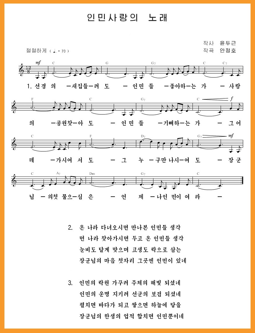国と人民に尽くして成した金正日総書記の不滅の業績と共に、歌「人民愛の歌」は偉人称賛の歌、恋しさの歌として朝鮮人民の間で広く歌われるでしょう。