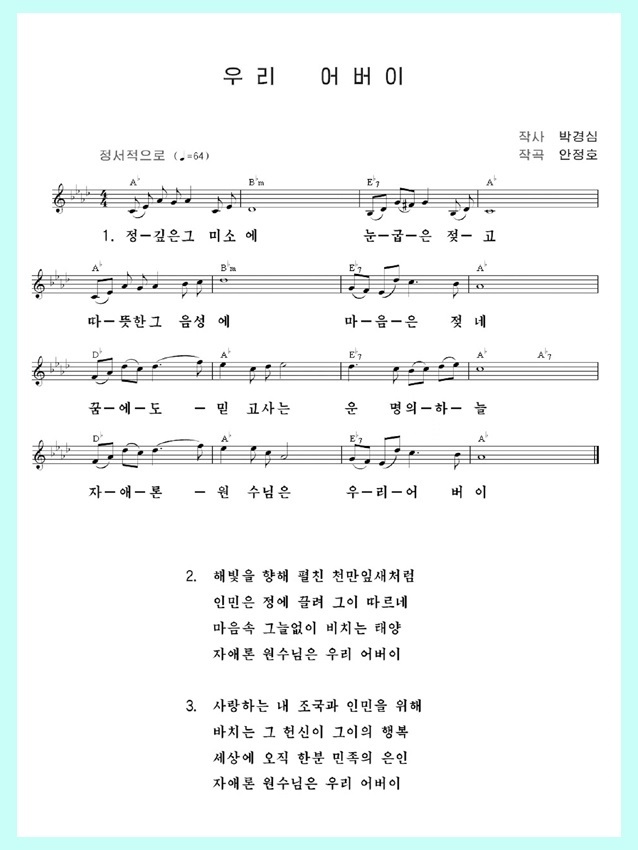 パク・キョンシム作詞、人民芸術家アン・ジョンホ*1作曲の「私たちの父」、この歌はチュチェ103(2014)年に創作されました。