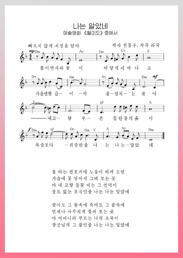 「私は知った」、この歌は、母なる祖国に対する朝鮮人民の崇高な感情を哲学的な深みを持って歌い上げる名曲として広く歌われています。