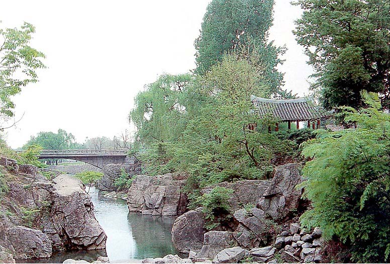 サミ亭*3は、朝鮮封建王朝時代の19世紀に建てられました。精巧なつくりの数本の花崗岩の石柱に木の柱をつながせ、その上に入母屋の屋根を載せました。サミ亭は、周りの環境とマッチする東屋建築の代表例で、地味な色彩で彩られています。サミ亭からは、渓谷と清らかな水など周りの美しい景色をめでることができます。