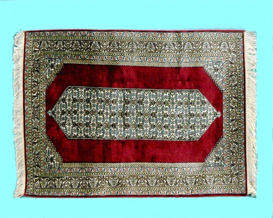 インドでは、最も尊敬する人に手製の絨毯を贈る慣わしがあると言います。純毛で織った絨毯の長さは138センチメートル、幅は79センチメートルです。