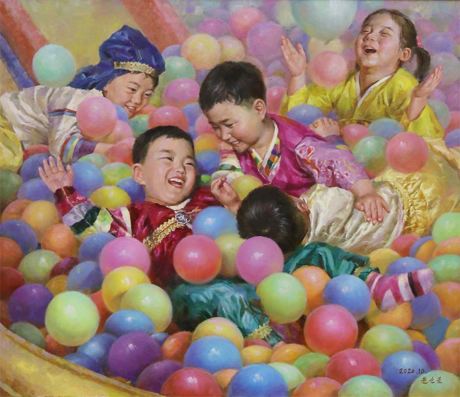 朝鮮の社会主義制度の下に何不自由なく幸せに育つ子供たちの姿を表しています。