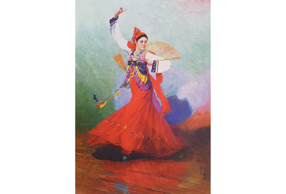 作品は、踊り子の優雅で軽快な民俗舞踊の動作を油絵の技法でリアルに描いている。