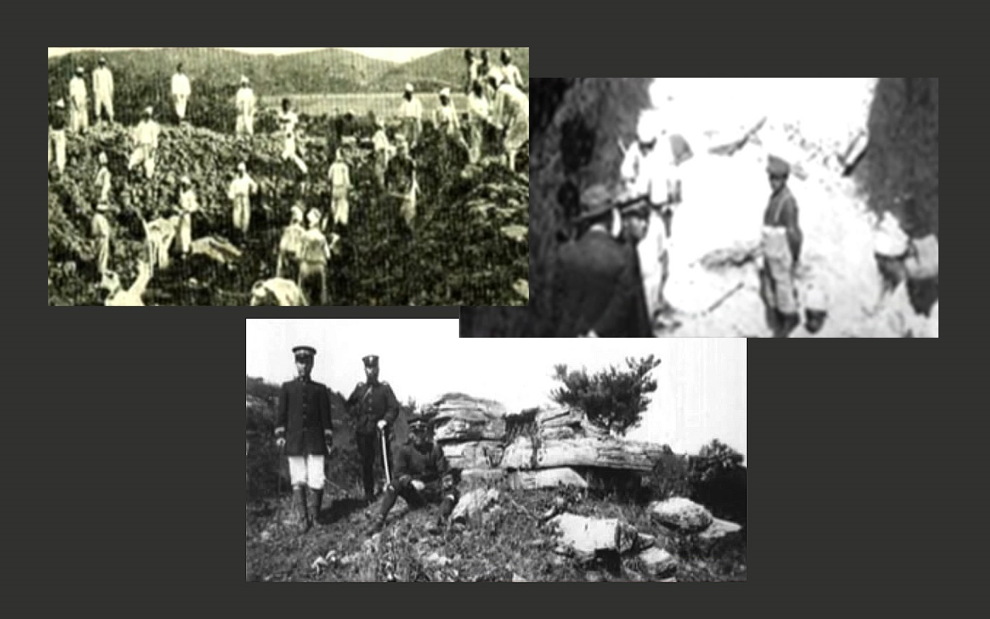 日帝は1910年代までピョンヤン、ケソン、ヘジュなどにあった数千基の古墳を掘り出して、その中の遺物を残らず運び出しました。下の写真は古墳を掘り返す日帝の盗掘団と盗掘の現場を監視する日帝の警官を撮ったものです。