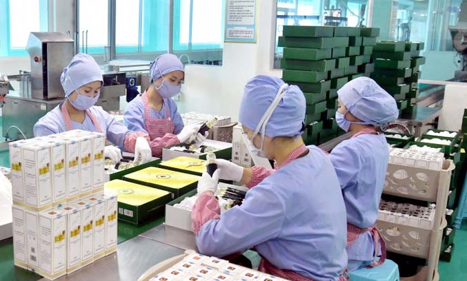 工場の研究者と技術者はファンデーションクリーム、ローションと紫外線防止乳液など、朝鮮の特産であるケソン・コリョ・インサムが主原料の良質の化粧品を開発しました。