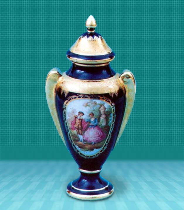 古くからフランスには民族の英雄や偉人に珍しい焼き物の装飾品を寄贈する慣わしがあるといいます。桃の形をした胴体と丸い底、取っ手が付いた蓋からなる焼き物のトロフィーの表面には、踊りを踊る男女の絵があります。トロフィーの高さは32.5センチメートルです。