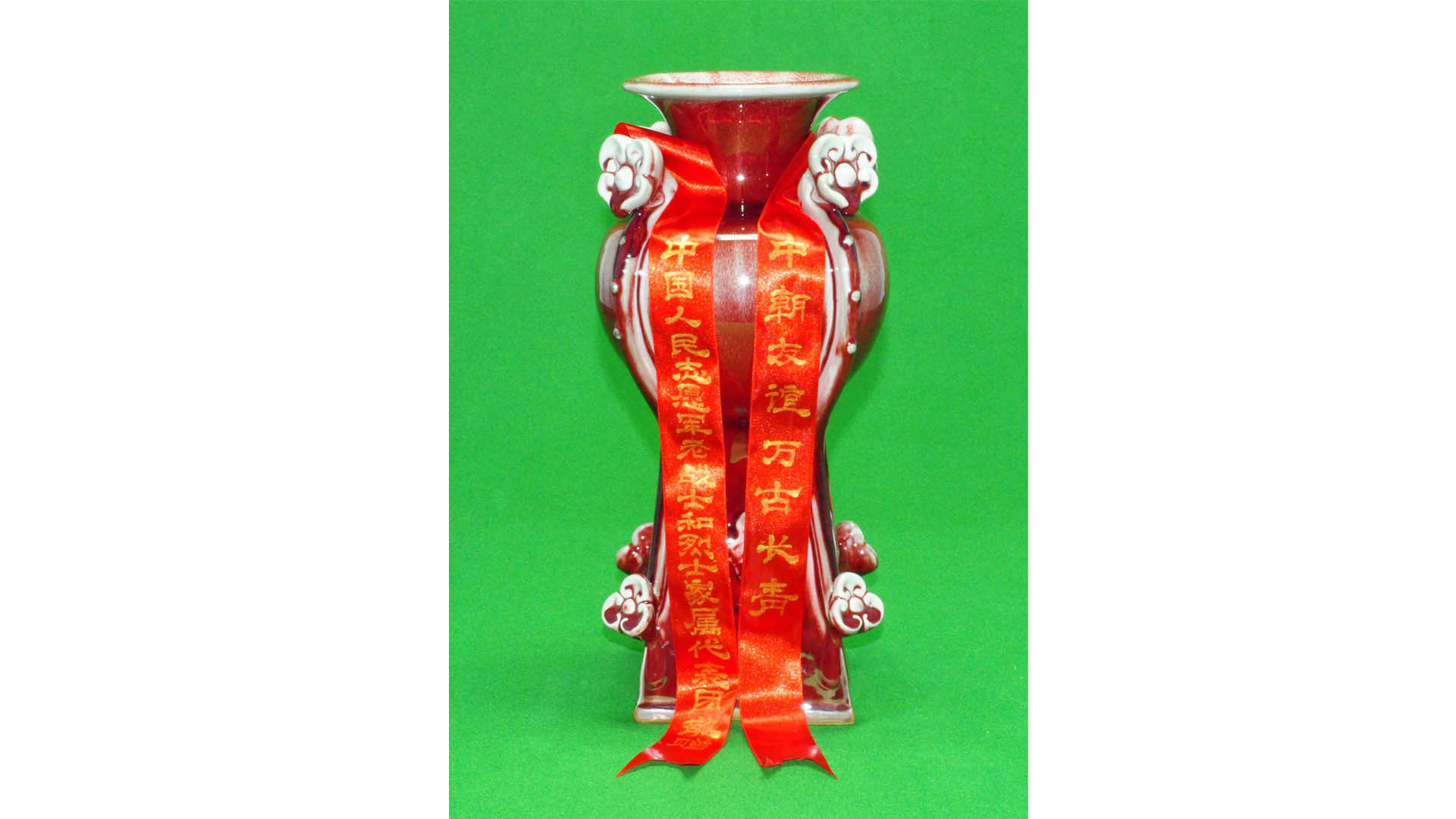 敬愛する金正恩総書記に2013年7月25日、中国人民義勇軍の老兵・烈士家族代表団から贈られた焼き物の花瓶です。