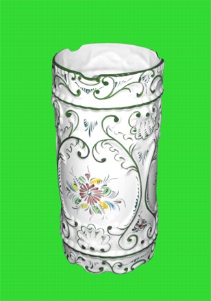 筒型の花瓶は、表面に満開になった花と伝統模様がレリーフされており、上と下の部分は回りに沿って線が引かれています。焼き物の花瓶の口の直径は21.5センチメートル、高さは45.5センチメートルです。
