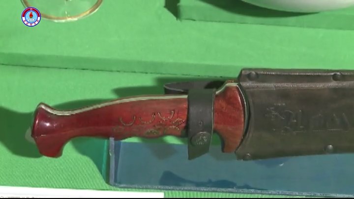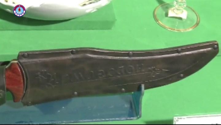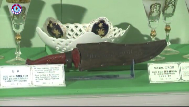 この短剣は偉大な金正日総書記にチュチェ99年(2010)4月9日、訪朝したロシアのウラジオストク先軍政治研究会代表団団長から贈られた物です。