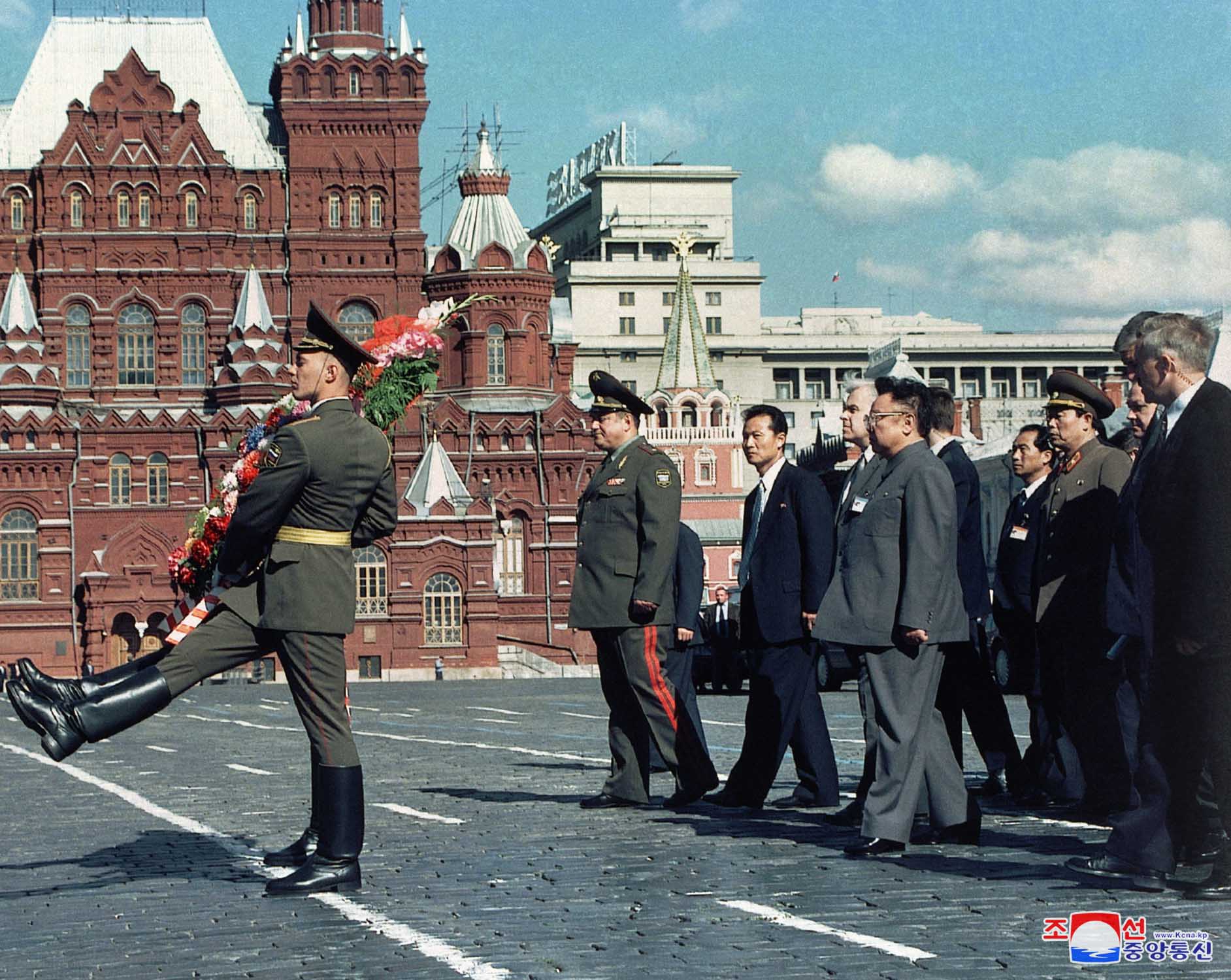 チュチェ90(2001)年8月、ロシアを訪問した金正日総書記は、モスクワの赤の広場にあるレーニン廟に花輪を捧げ、敬意を表しました。そして、レーニンの事績と巡洋艦「アブロラ」の砲声で10月社会主義革命のスタートを告げた歴史が秘められているサンクト・ペテルブルク市も訪問しました。世界は総書記の訪問に、人類の未来で理想である社会主義を固く守り、輝かそうとの揺るぎない意志を見ました。