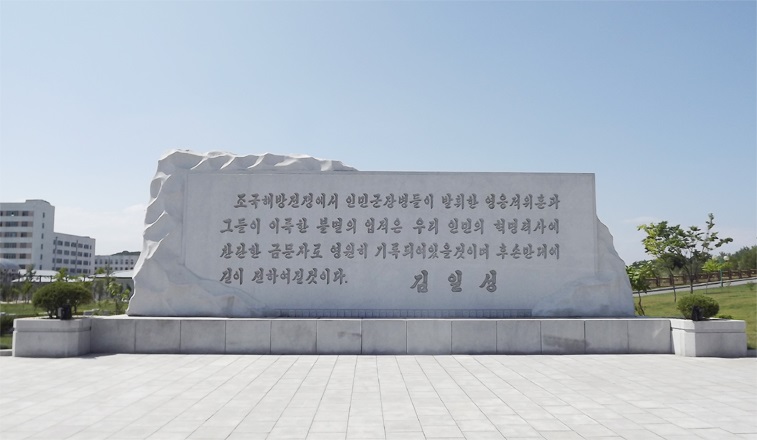 1905年代の祖国解放戦争のとき、侵略者を退けて武勲を立てた国の防衛者を押し立て、その人生を永遠に輝かせようとの敬愛する最高指導者金正恩委員長の熱い思いやりによって建てられました。