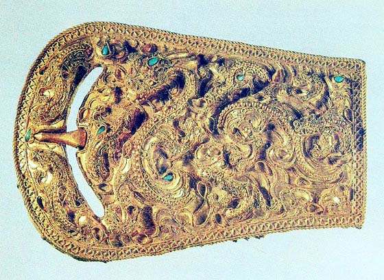 製作者の奇抜なアイディアと表現力を見せるこのバックルは、貴金属細工の高い技をうかがわせる貴重な遺物です。