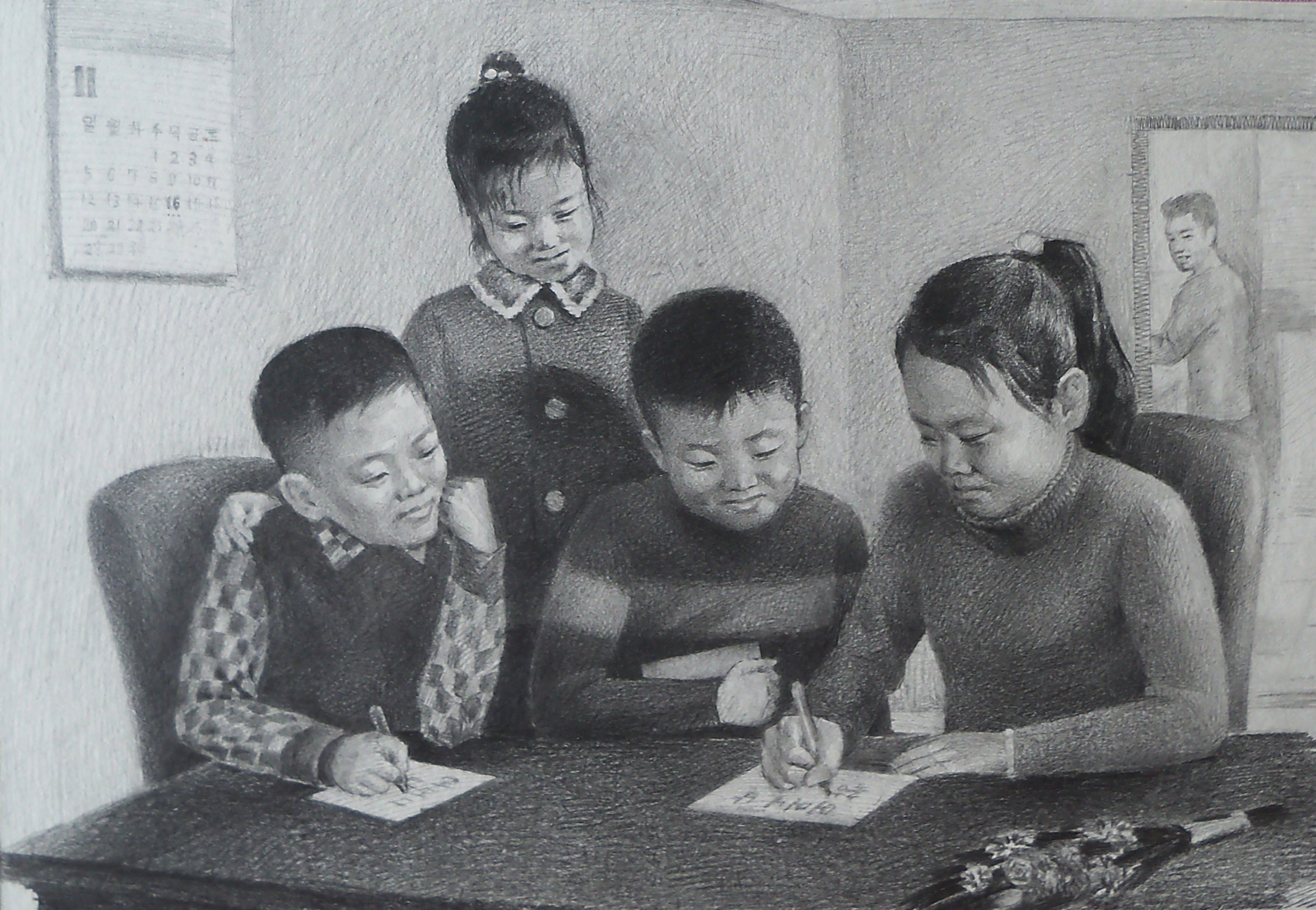 チュチェ106(2017)年6月のある日のことでした。チョンジン市ポハン区域のスブク高級中学校のある教室にユン・ハクチュンさんが入りました。一生、美術教員だった父の後を継いだユンさんです。ユンさんは人民軍から除隊した後、大学を卒業し、ハムギョン北道産業デザイン創作社に勤めていましたが、美術教育を強めるための国家的措置によってここに転職して来たのです。