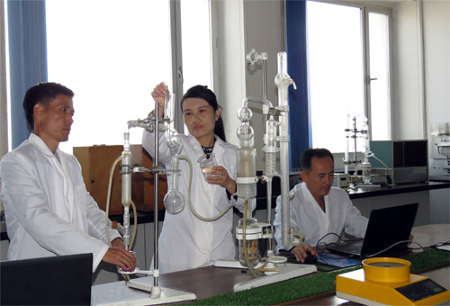 灌水に合わせた施肥と農薬散布の方法は、肥料の利用効率を最大限高め、収穫を増やせる実利的な栽培技術です。栽培技術の開発で主役を果たしたのは、金日成総合大学生命科学部の研究者である博士、助教授のチ・ウンジョンさんです。