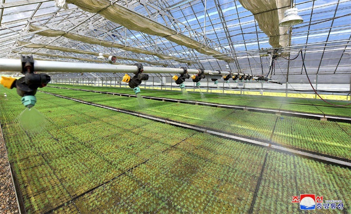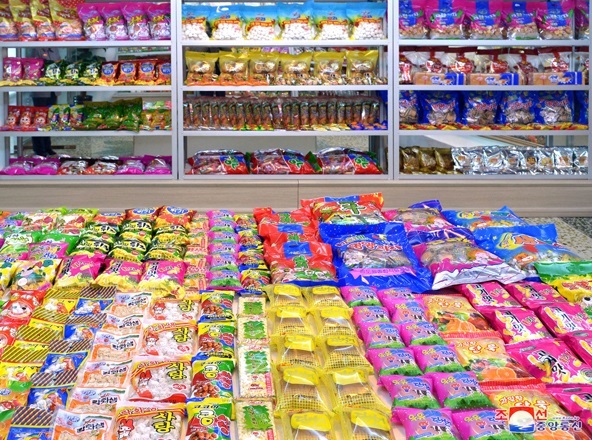 発電所で生産される電気で道内の工場をフル稼働させ、各種製品を量産しています。ウォンサン革靴工場、ソンドウォン総合食品工場など多くの工場、企業で品数が遥かに増え、生産が正常化しています。また、短期間に能力の大きい道育苗場が造られ、ウォンサン戦傷栄誉軍人カバン工場、ウォンサン市トウモロコシ加工工場が増改築され、メボン山*2ブランドのミネラルウォーター工場が完工しました。その過程に、カンウォン道の人たちは自力更生はまさに幸せをもたらす鍵で、万能の力であることを痛感しました。