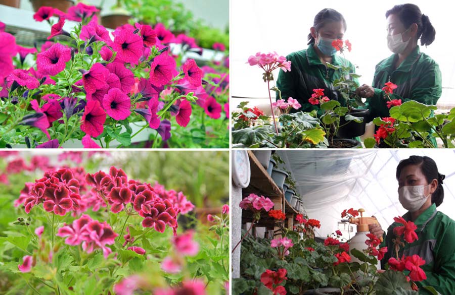 ソソン区域フラワー事業所の人たちも頑張っています。今年、街と公園に花壇と花台が随分増えましたが、季節に合わせて花の木を植え、春から秋にかけて街中、花が満開になるよう、昨年より倍以上の苗を育てています。