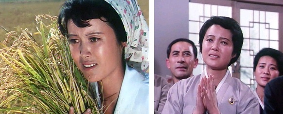 総書記が評価したヒロインの農村管理委員長の役は後年、人民俳優、芸術界のスターとして名を馳せたオ・ミランさんが受け持っていました。総書記は主役の女優が父と夫もいるのに、夫に先立たれた女性の役をリアルにこなしているのを見れば、本当にたくみな演技の持ち主だと高く評価しました。