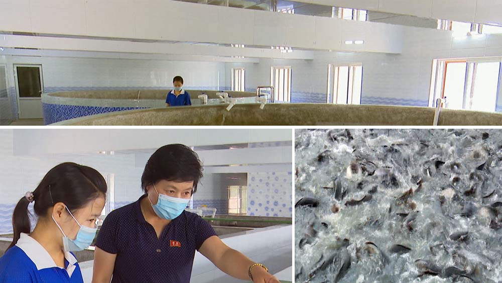 朝鮮では、養殖が大衆上げての運動として活発に展開されています。ピョンヤンにあるテドンガン・バッテリー工場では、実情に応じて構内に養殖池をつくり、従業員に魚を供給しています。