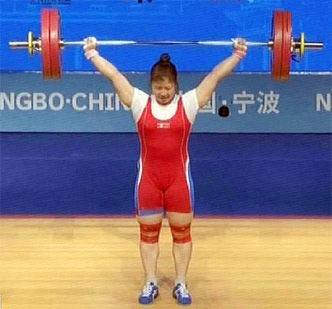 小成に驕らず、発奮してチュチェ102(2013)年に行われた第6回東アジア競技大会の女子重量上げ69キロ級の細部種目と総合成績で記録を塗り替えました。チュチェ105(2016)年は第31回オリンピック競技大会の女子重量上げ75キロ級でまたもや優勝し、オリンピック2連覇を果たしました。