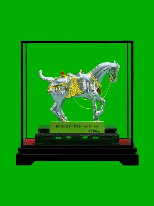 金銀メッキの工芸「駿馬」は、敬愛する金正恩総書記にチュチェ102(2013)年9月9日、中国晋港青年国際交流促進会から贈られたものです。